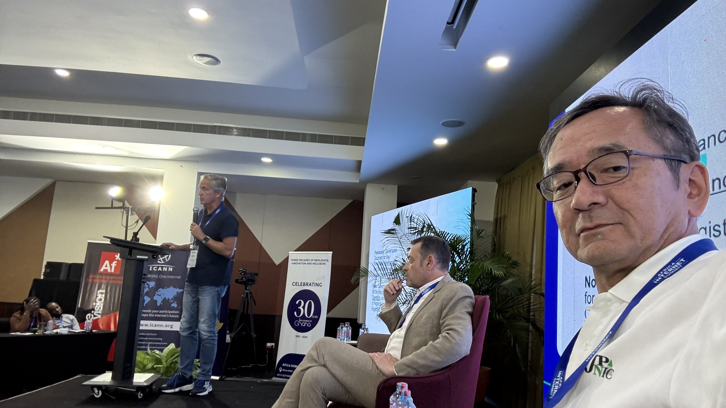 dom_gov_team IPアドレス インターネットガバナンス 他組織のイベント政策主幹の前村です。私は現在NRO番号評議会(NC)のメンバーを務め、RIR設立認定要件文書、ICP-2 (Internet Coordination Policy 2) の改定作業に取り組んでいます。ちなみに私の議席はAPNIC理事会任命で、2025年中の1年任期なのですが、2026年の任命を先日受けましたので、ICP-2改定作業には引き続き取り組むことができます。ICP-2改定のほうは、2025年8月28日に草案第2版を公開して、現在意見募集中です。9月にベトナム・ダナンで開催されたAPNIC60カンファレンスでもコンサルテーションセッションを実施し、これから次々と開催されるRIRミーティングでも順次意見を伺っていきますが、現在NCメンバーがいないAFRINIC地域でも意見聴取を行うべきということになりました。私はNCからの派遣メンバーの1人として、チェアのHervé Clément氏、同じくRIPE地域のメンバーAndrei Robachevsky氏とともに、9月29日から10月3日まで、ガーナの首都アクラで開催されたアフリカインターネットサミット(AIS)2025に参加して、ICP-2に関する意見聴取を行うとともに、AIS2025全体に参加してきましたので、本稿でご報告したいと思います。