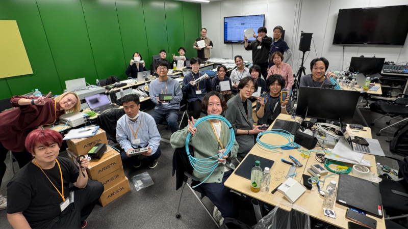 髙田:サーバチームは、Arista機器で多くの機能を補えるため、監視中心に構築しています。ネットワークが正しく運用できているか、アラートがちゃんと出せるかというのも確認しています。メンバーの中にはNOCに参加するのが初めてな方も多いため、どうやってWi-Fiが設計構築されていくのか、というところを体感していただきながら取り組んでいます。