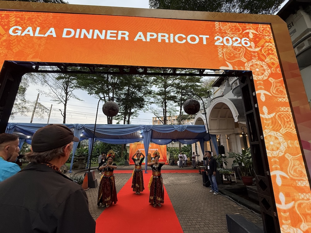 APRICOT2026の始まりは、現地の衣装を纏ったダンサーによるパフォーマンスから幕開けました。APRICOTでは、開会の際に民族的なパフォーマンスが行われることが恒例になっています。軽やかな音楽と広大な映像とともに、息のあったパフォーマンスが繰り広げられていました。